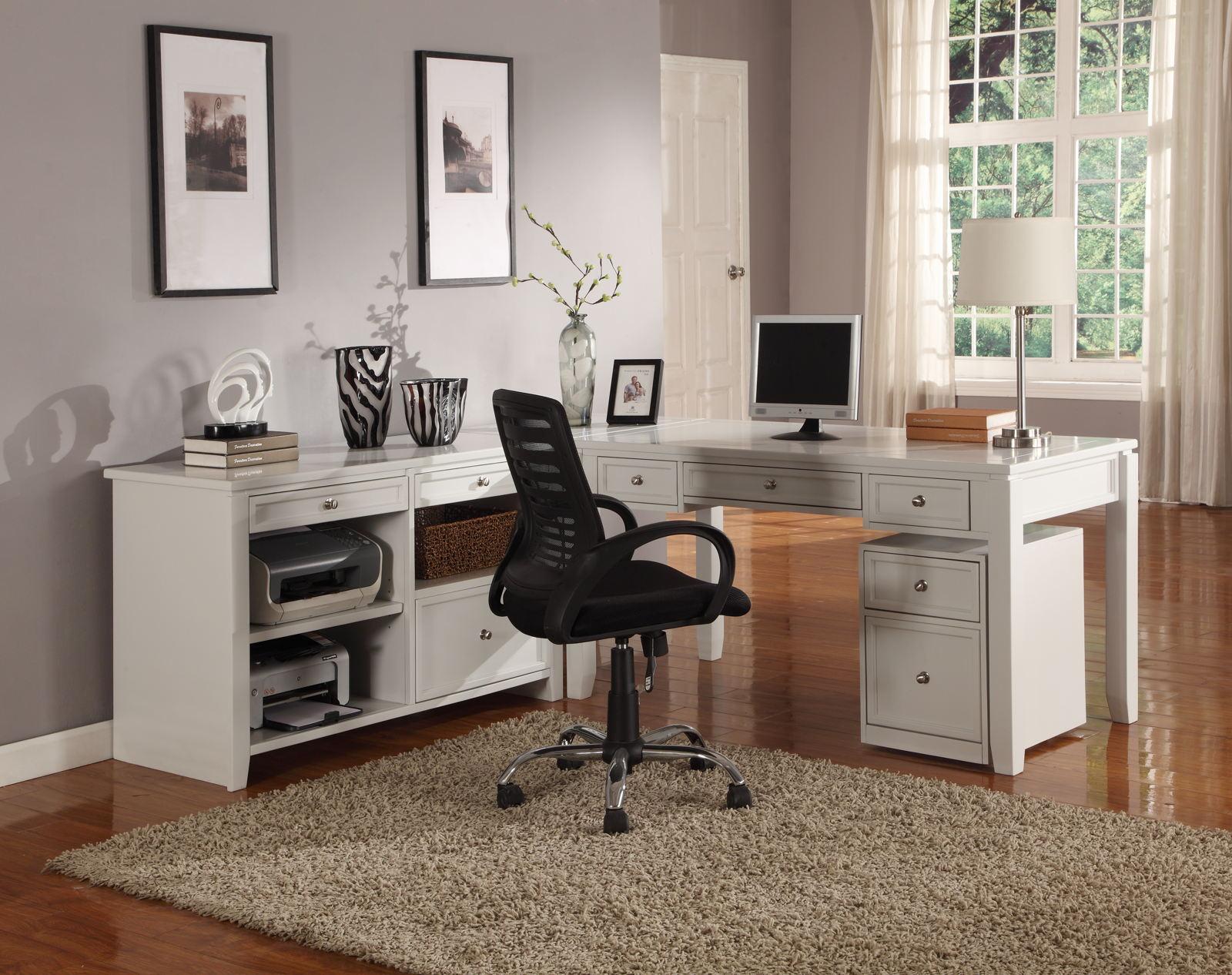 Parker House Boca 5-Piece L-Shaped Modular Office Credenza in Cottage White