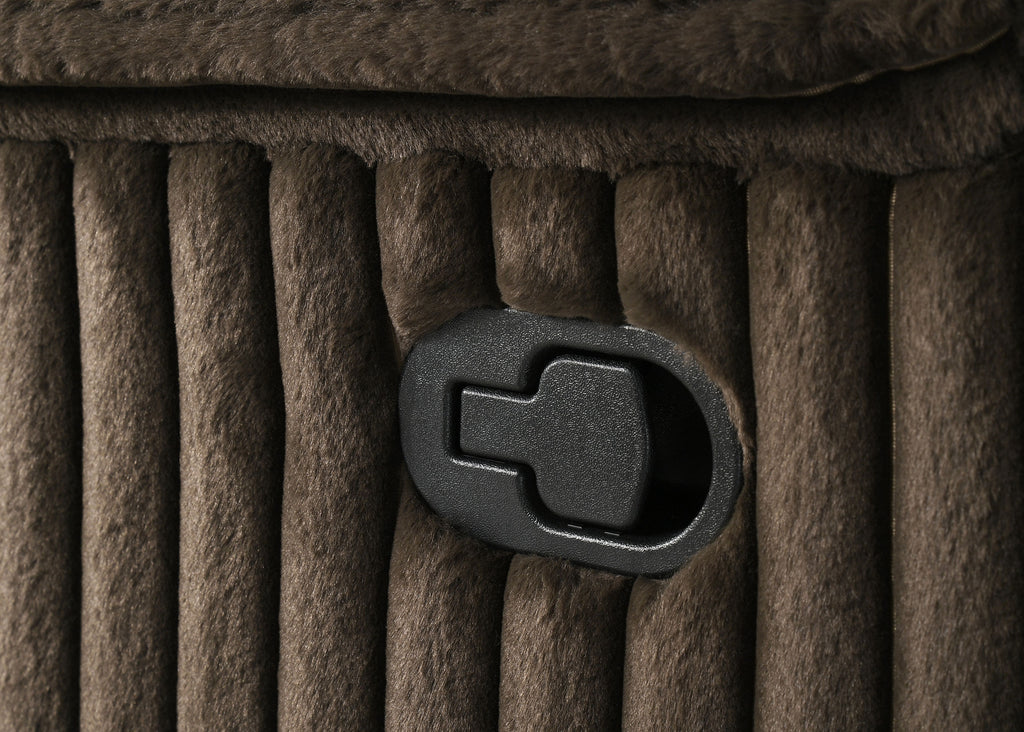 Unwind in sculpted comfort with this reclining sectional sofa, where bold texture meets irresistible softness. Wrapped in wide-wale corduroy upholstery, its velvety ribbed finish creates visual depth and an inviting touch. Deep channel tufting enhances the plush profile, while dual consoles offer lift-top storage and stainless steel cup holders. With pocket coil seating beneath every cushion, this sectional is a luxurious retreat for everyday lounging and connection. Key Features: • Reclining sectional sofa with sculpted profile and ribbed channel tufting throughout each panel • Chocolate brown wide-wale corduroy upholstery offers soft velvety texture and elevated visual interest • Two reclining seats provide effortless comfort with smooth manual motion functionality • Pocket coil seating ensures enduring structure, bounce, and all-day supportive comfort • Two center consoles with lift-top storage and removable stainless steel cup holders included • Reinforced with soft fabric, foam cushioning, and sturdy metal framework for lasting use