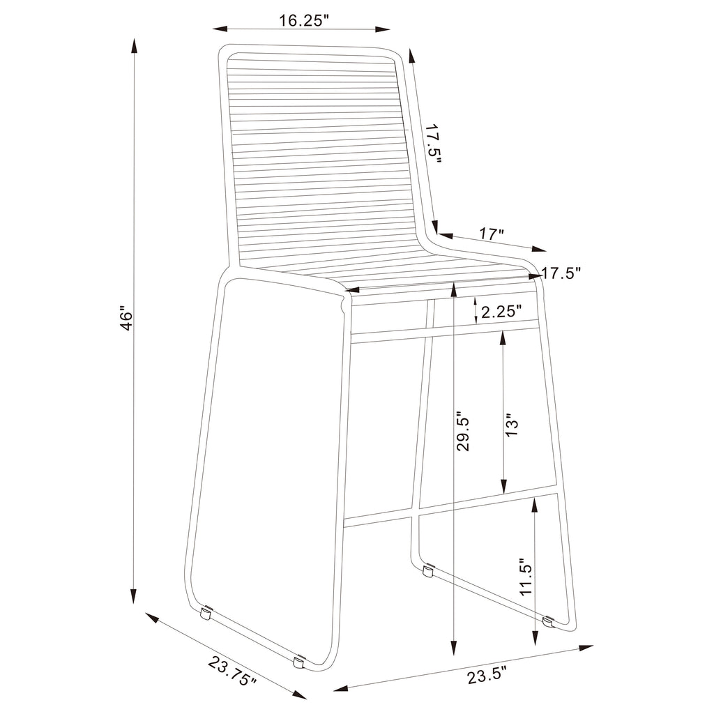 Create visual texture with this contemporary rope woven stool. A tall and slender metal frame in a gunmetal finish, wrapped in charcoal tone rope around the backrest and seat, offer a restful spot for family and guests at elevated dining areas. The metal frame offers an open, airy feel with its slim seat and angled legs, and extra support with a lower footrest. With a sled-style base, this stool slides gracefully up to a bar top or counter height tabletop for drinks, meals and more. Lastly, a dark hue throughout creates a dramatic, natural vibe for modern farmhouse and boho-inspired homes.