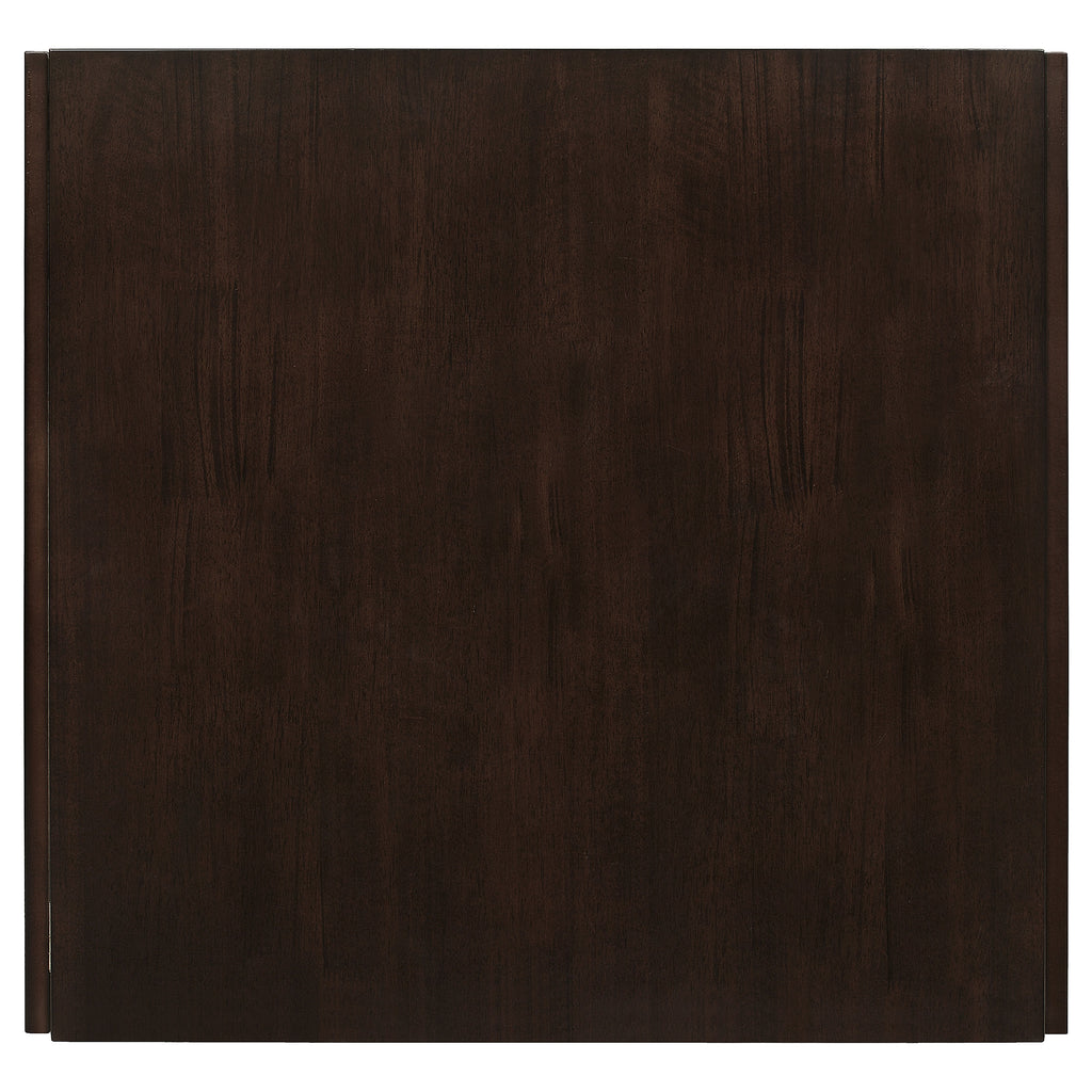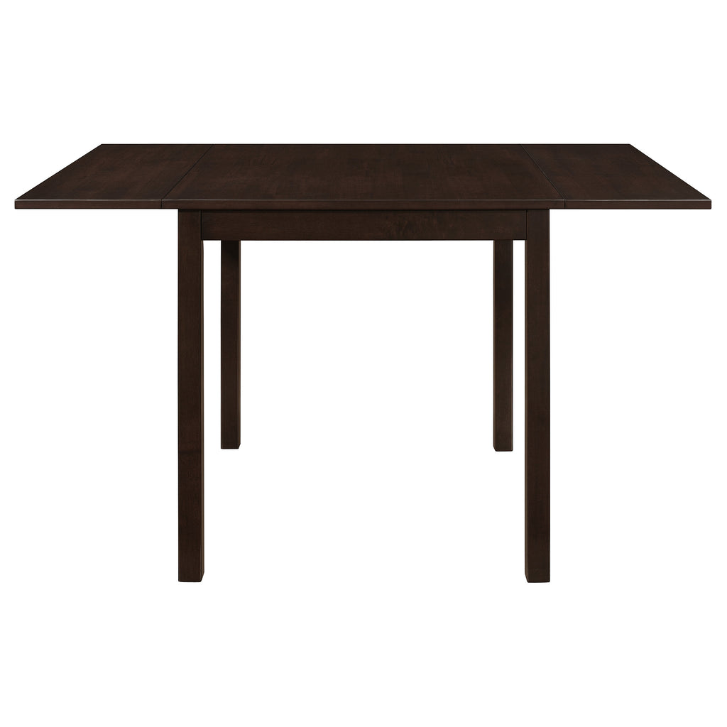 Designed for style and versatility, this drop-leaf dining table makes the most of compact spaces. Its rectangular top easily extends with foldable ends, offering flexibility for everyday meals or hosting guests. The rich cappuccino finish brings depth and warmth, while straight block legs provide clean, contemporary structure. Crafted from solid rubberwood, veneer, and engineered wood, this durable table complements both modern and transitional dining areas with timeless appeal. Key Features: • Rectangular dining table with drop-leaf extensions for adjustable surface area • Warm cappuccino finish enhances both modern and transitional interiors • Foldable ends make this table ideal for compact rooms and flexible layouts • Straight legs and square edges maintain a sleek, timeless silhouette • Crafted from solid rubberwood, veneer, and engineered wood for durability • Perfect for breakfast nooks, apartments, or small dining rooms