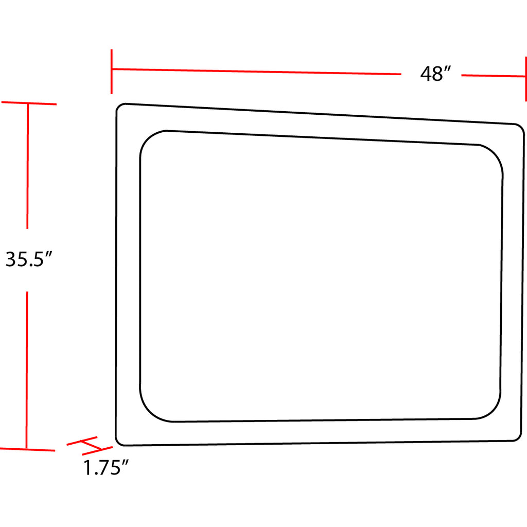 - Rectangular mirror features a solid-wood frame and beveled edge for high-end appeal