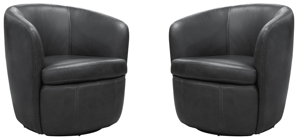Our timelessly chic Barolo 100% Italian leather swivel chairs feature a classic yet versatile silhouette that fits effortlessly into almost any room. This low-profile barrel seat is wrapped in glove soft leather, offering 360-degree swivel action to allows for quick pivots in any direction. Bold decorative stitching elevates this chair to the next level, securing its place as a tried and true staple piece in your living space.