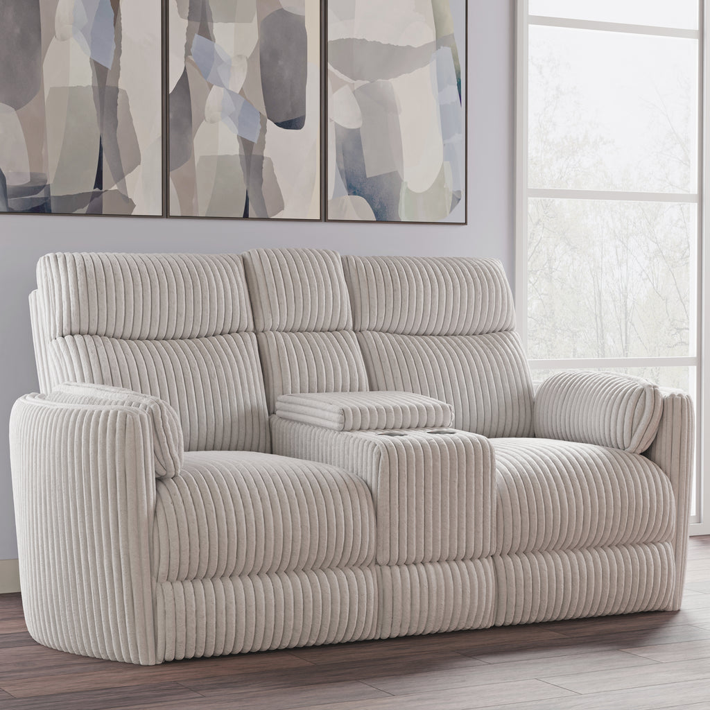 Perfect for relaxing at the end of a long day, this Power Glider Console Loveseat features a soothing gliding motion and smooth power reclining for ultimate comfort.