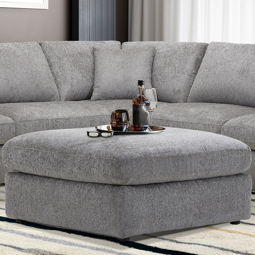 Exquisitely upholstered in a durable, 100-percent polyester fabric with textural dimension and softness, this ottoman will add a touch of luxury to any room. The comfort cushions are encased in cotton, down-proof channeled ticking to help them keep their shape and prevent feather migration, ensuring the ottoman maintains its plushness for years to come. The cushion is padded with high-density Dacron and topped with sterilized down and feathers for maximum plushness, providing a cloud-like feel. The cushion features high-density webbing for long-lasting support, ensuring your comfort for years to come. Use it as a footrest, extra seating or even a small coffee table.