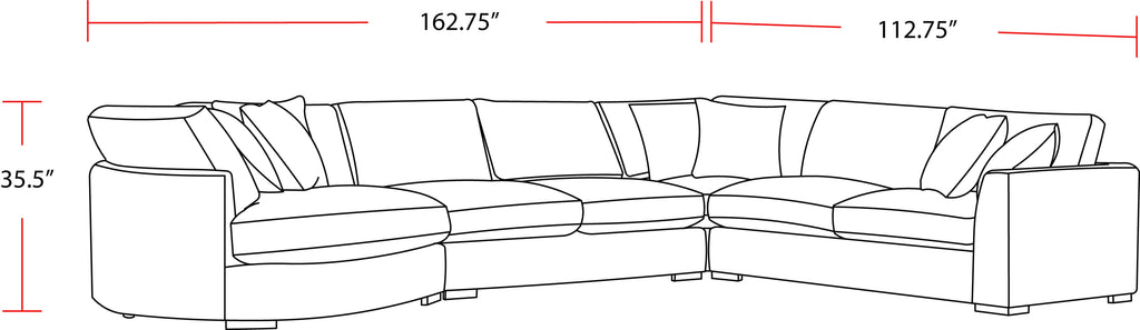 - Four-piece sectional includes a RAF loveseat, LAF bumper chaise, armless loveseat, and wedge