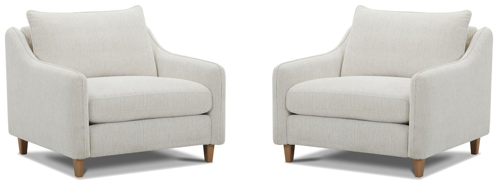 Whether you're curling up with a book or entertaining guests, our Chair and a Half provides the perfect combination of comfort and style. The wood feet in a natural finish add a distinctive touch and lend a modern vibe to the design. Exquisitely tailored and upholstered in a durable, 100-percent polyester fabric with rich texture and velvety softness, this chair provides a cozy and luxurious seating experience. The seat cushions are padded with high-density Dacron and topped with sterilized down and feathers for maximum plushness, while the seating features no-sag springs and high-density webbing for long-lasting support. The wood frames feature reinforced corner blocks for lasting strength and stability, and select woods are kiln-dried to minimize warping and splitting while ensuring longevity. The seat cushions are encased in cotton, down-proof channeled ticking to help them keep their shape and prevent feather migration.