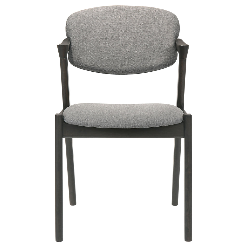 Choose from the best with this sophisticated mid-century modern Z-chair, designed to bring clean lines and dramatic angles into your home. Upholstered in a richly toned fabric, the padded backrest and seat provide a comfortable place to rest, whether you're dining or relaxing in the living room. The sturdy frame, crafted from solid hardwood, features a smooth finish that contrasts beautifully with the fabric upholstery, while sharp armrests and an independent, hovering seat back add a contemporary flair. With acutely angled back legs and straight front legs, this chair showcases a striking, rebellious silhouette that makes a bold statement. Perfect for pairing with a modern dining table or using as a stylish accent, this chair combines classic design with cutting-edge style. Key Features: • Mid-century modern Z-chair with clean lines and bold angles • Richly toned fabric upholstery offers a comfortable, padded seat and backrest • Solid hardwood frame with a sleek, contrasting finish • Sharp armrests and hovering seat back add a contemporary touch • Unique silhouette with acutely angled back legs and straight front legs • Ideal for dining rooms, living spaces, or as a versatile accent chair