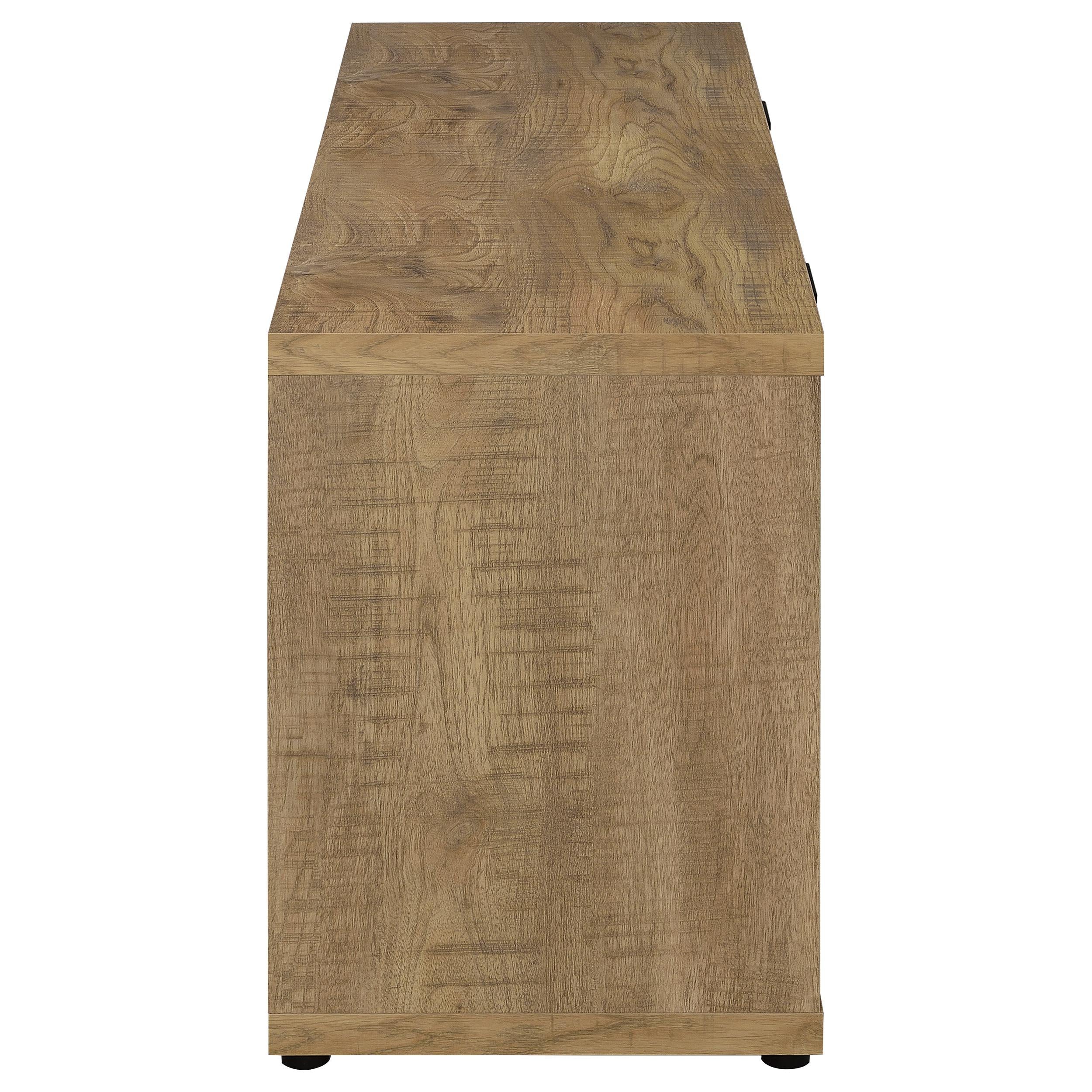 Transform your entertainment space into a rustic haven with our TV stand, drenched in a warm mango finish. Thoughtfully designed, it boasts six storage compartments ensuring all your media essentials have a designated spot. Two adjustable shelves offer flexibility, while the four doors keep your equipment and accessories concealed yet accessible. To further enhance your storage capacity and create a cohesive look, pair the stand with our matching media towers. This ensemble is more than just functional; it's an embodiment of rustic charm, ensuring your media zone is both organized and aesthetically pleasing.