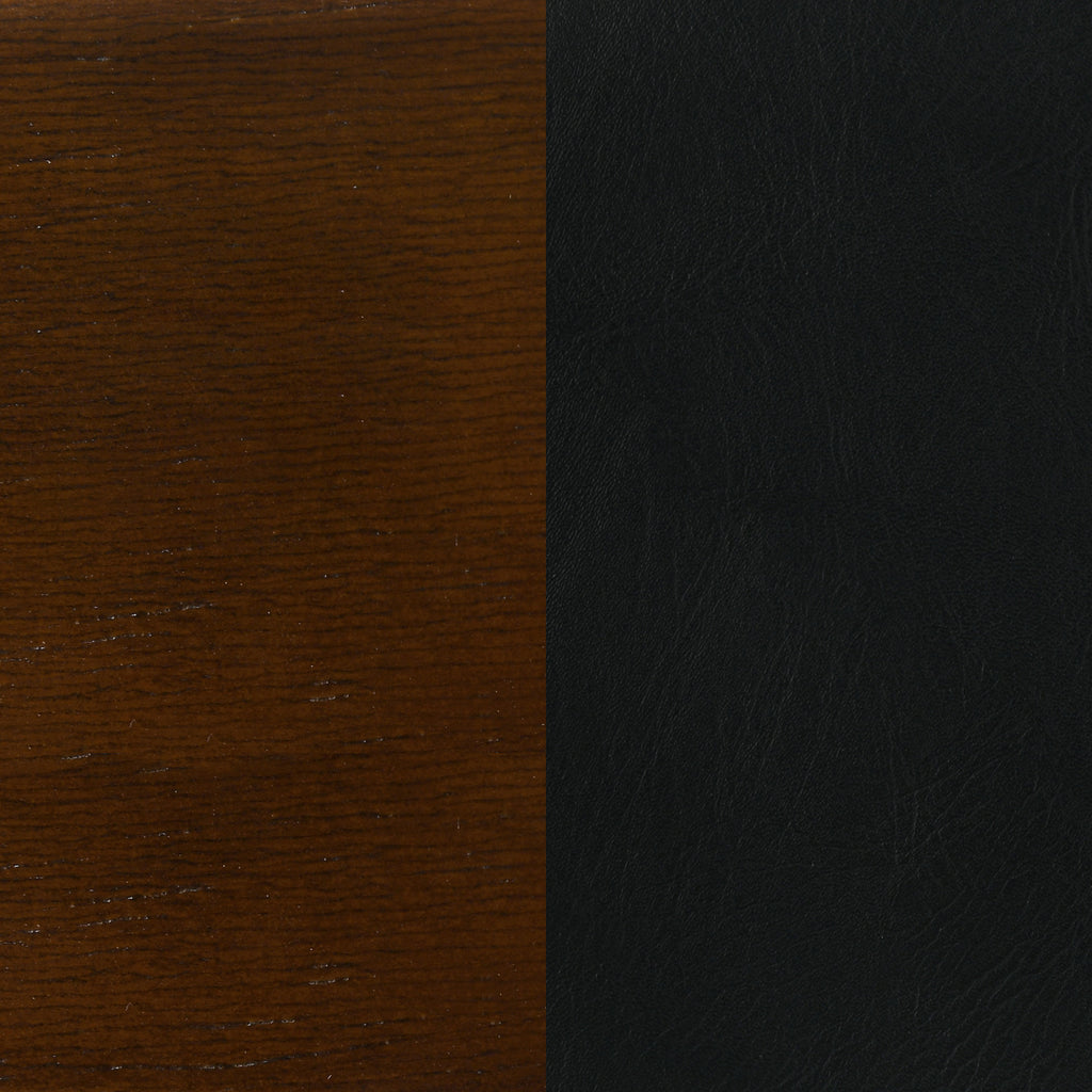 Anchor your traditional or transitional kitchen island or bar table with this charming wood counter stool. Ideal for relaxing at the end of the day, the stool features warm chestnut finish wood with a plush seat and full back for comfort and support. Complete with a swivel seat for easy conversation. Black leatherette over its seat and padded backrest imparts a rich, classic vibe. Slightly angled legs are supported with a round brace that doubles as an easy footrest for casual comfort and relaxation. Key Features: • Chestnut finish wood counter stool with plush seat and full back for comfort and support • Swivel seat for easy conversation • Black leatherette over seat and padded backrest for a rich, classic vibe • Slightly angled legs with round brace for casual comfort and relaxation • Ideal for relaxing at the end of the day